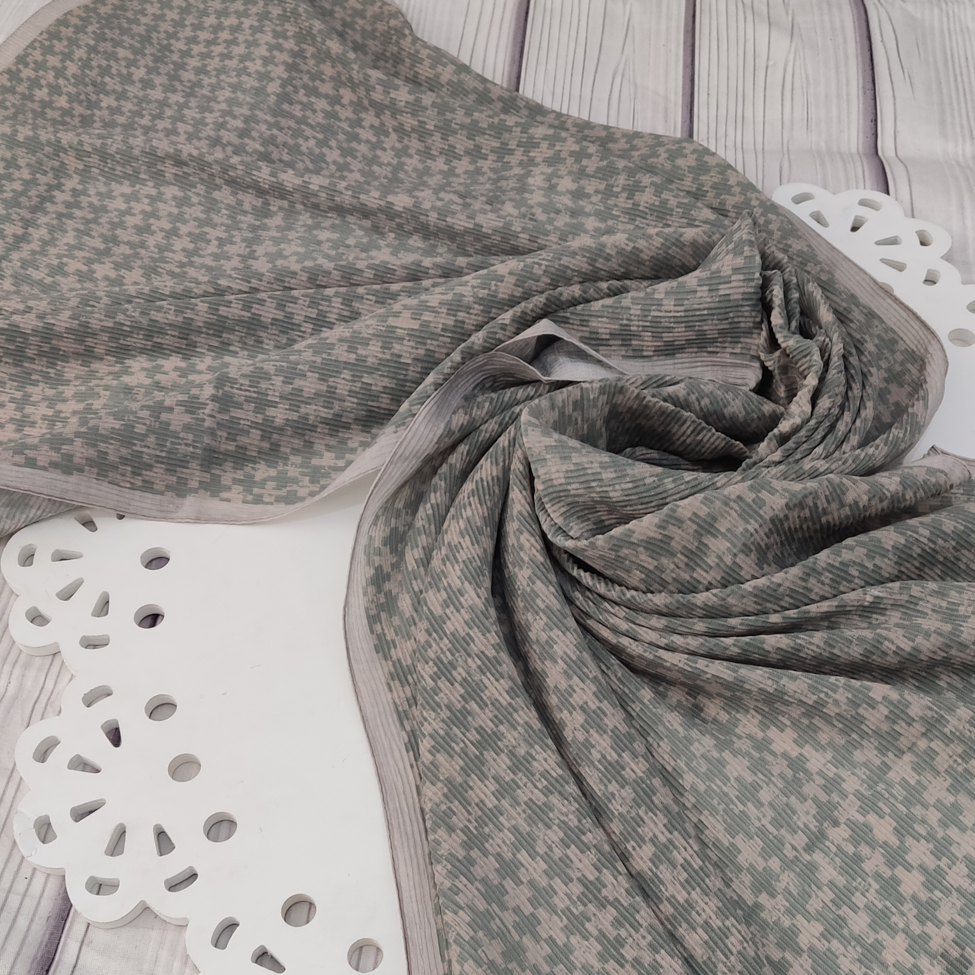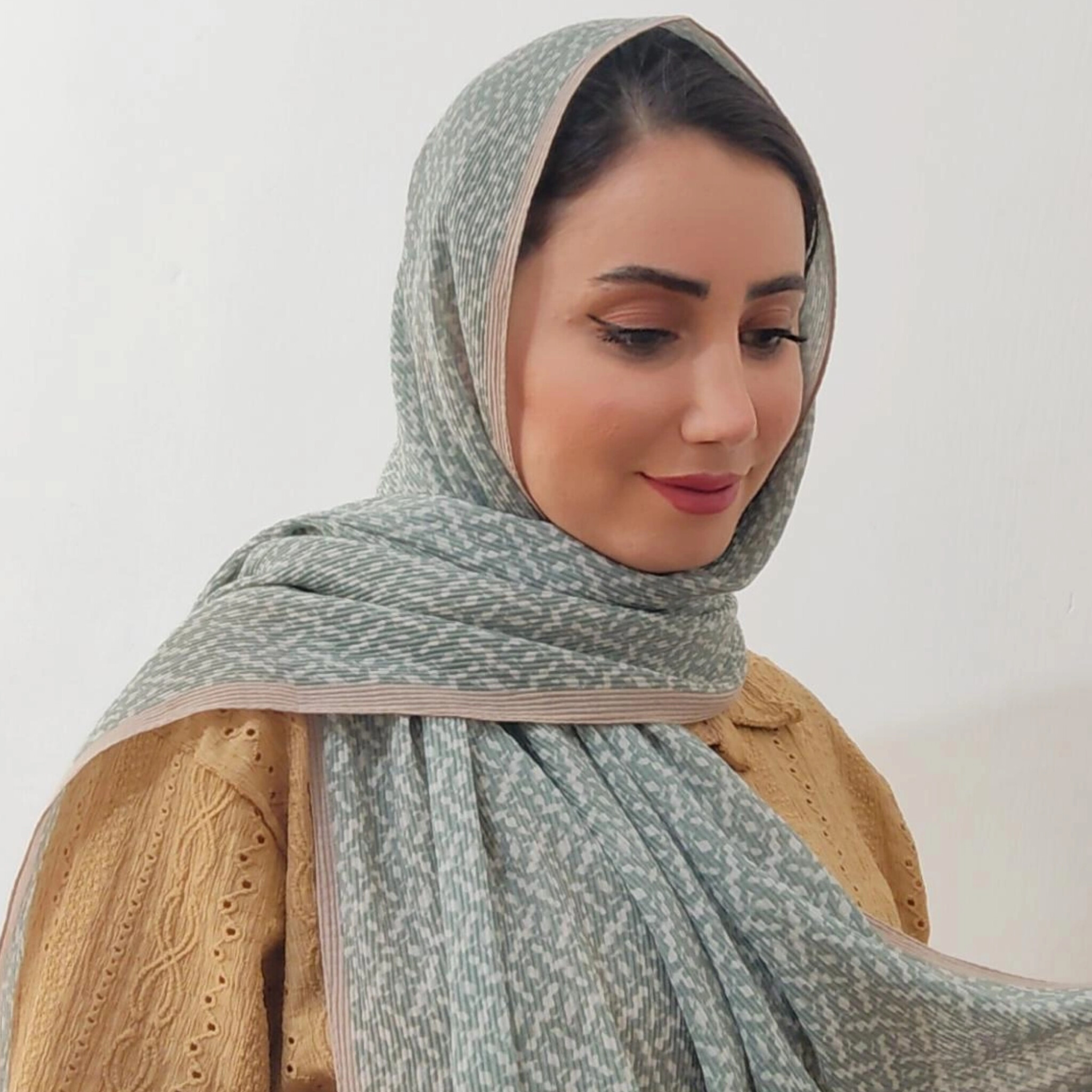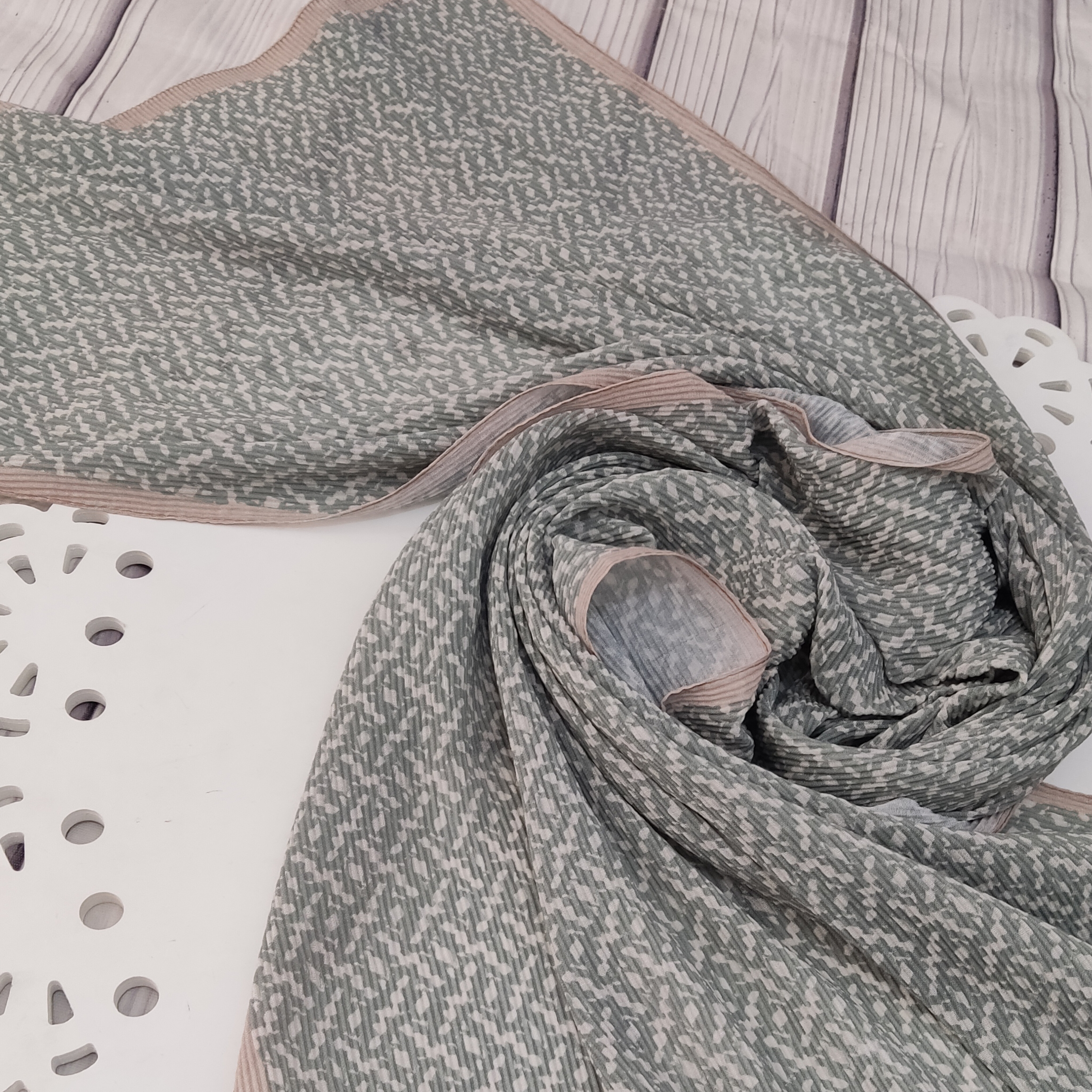 شال برشکا طرحدار با تناژ رنگی ماچا