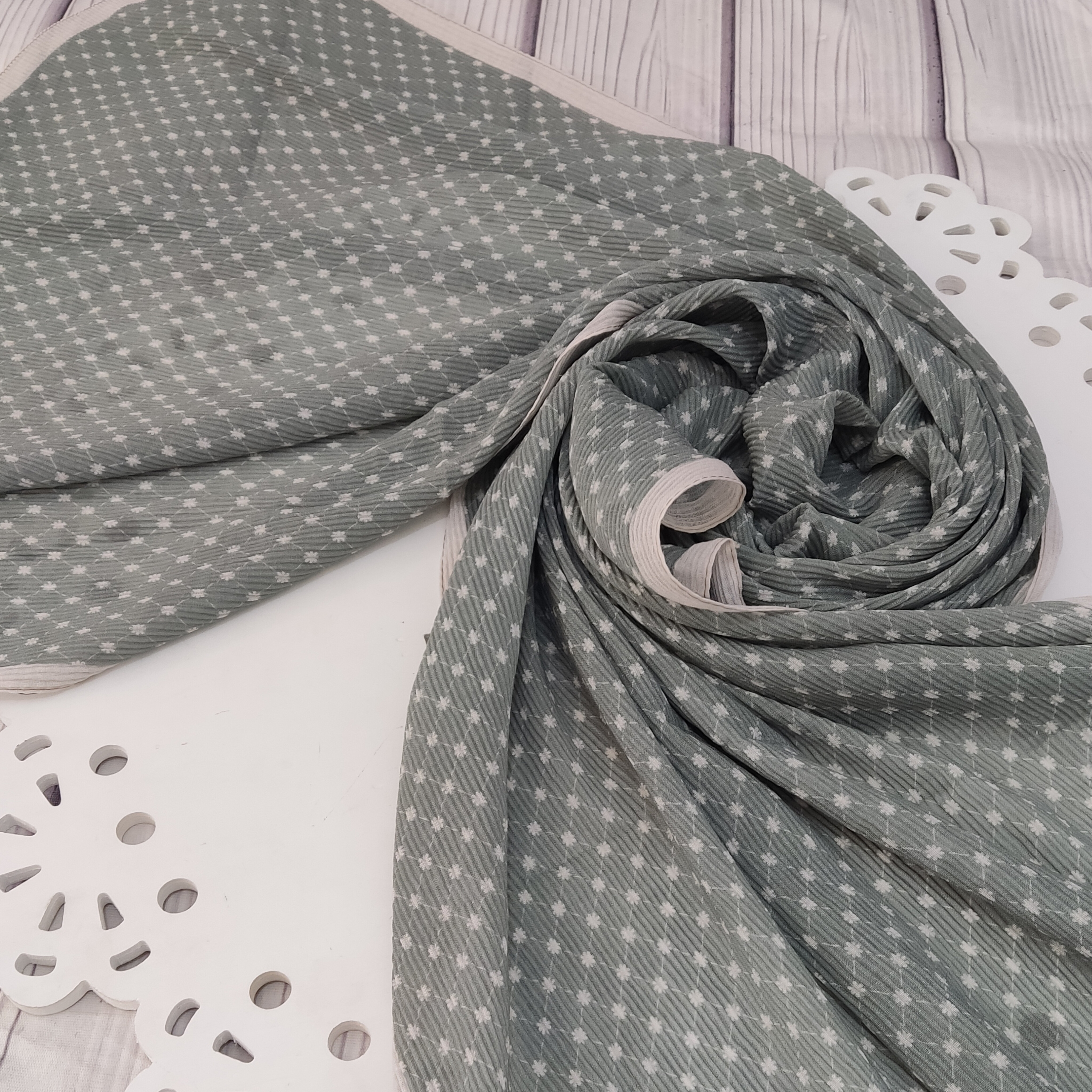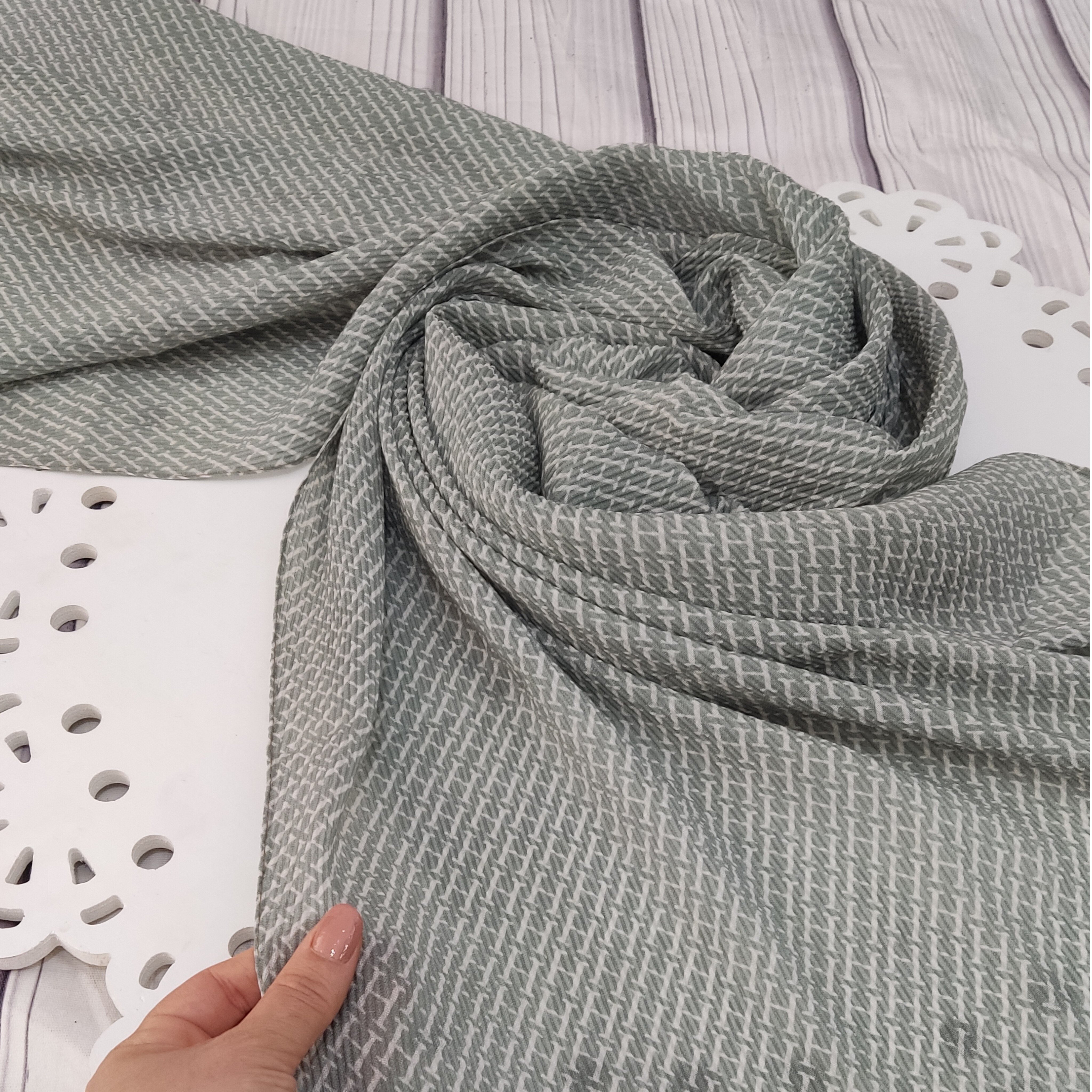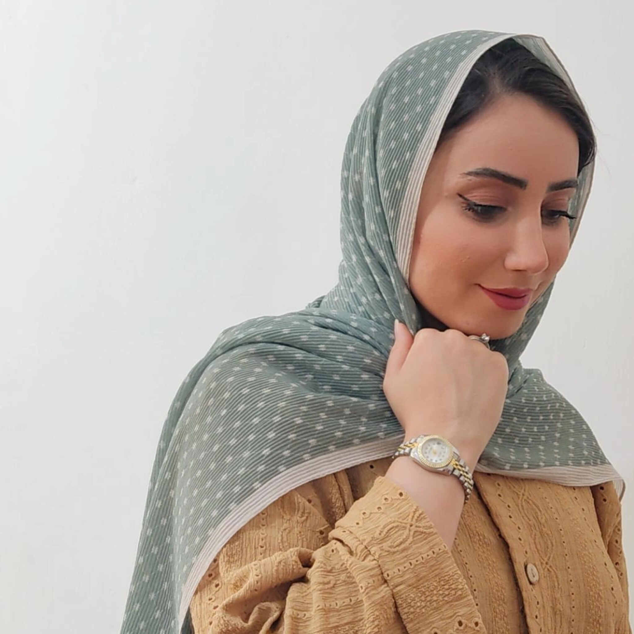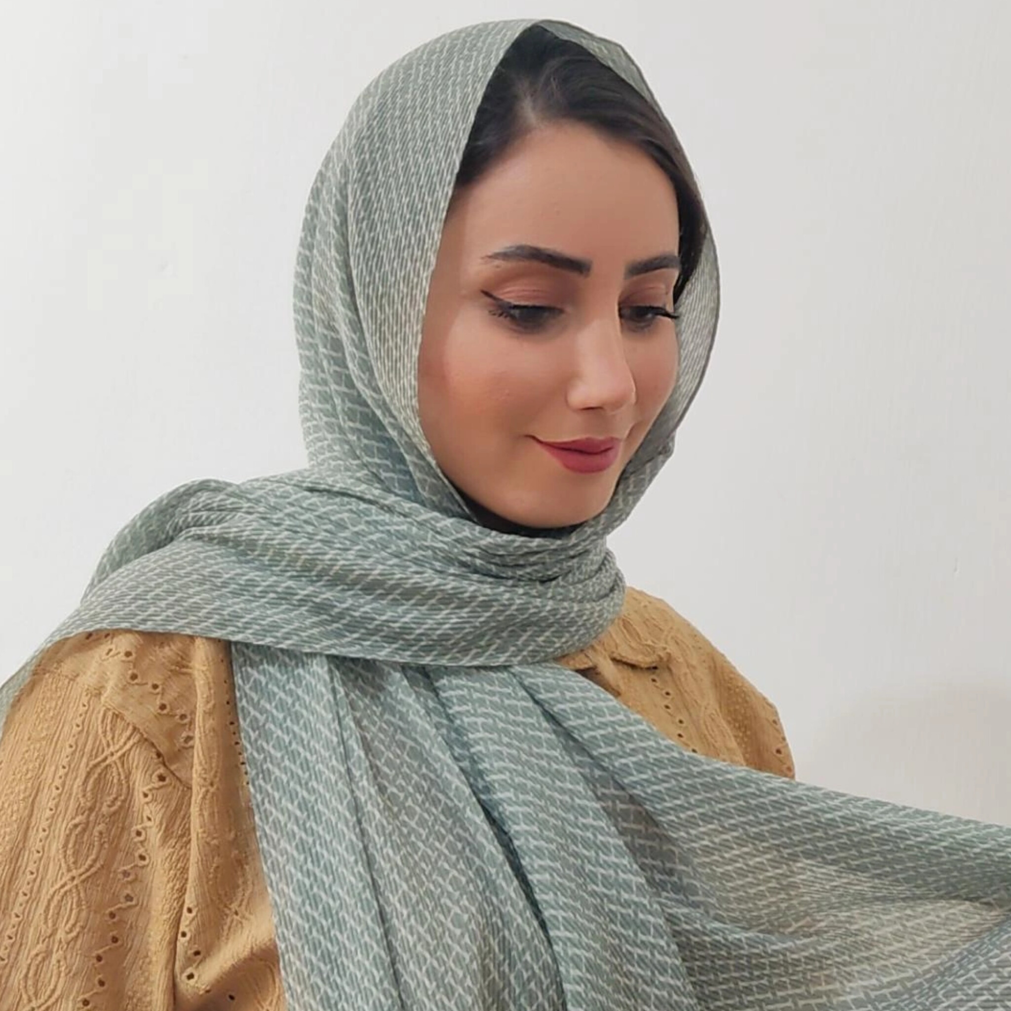 شال برشکا طرحدار با تناژ رنگی ماچا